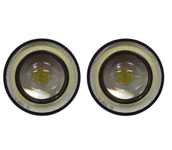 JUEGO DE FAROS LED 7.5CM DIAMETRO BLANCO CON OJO DE ANGEL 12V